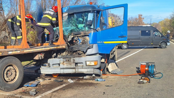 În această dimineață, în comuna Bunești (judetul Suceava), a avut loc un accident rutier grav implicând două camioane și un autoturism.