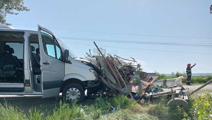 Două victime în urma coliziunii – căruța avariată
