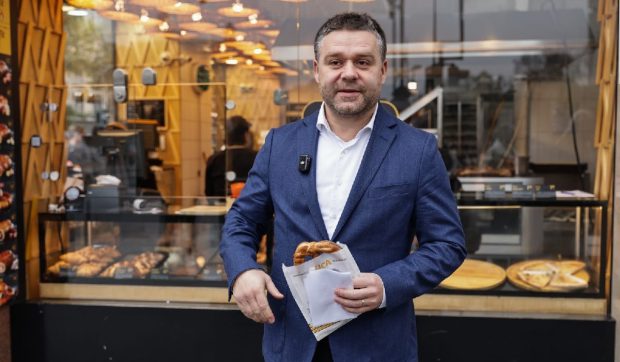 Ciprian Ciucu a oferit covrigi ca recoltă după depunerea candidaturii pentru Primăria Bucureștiului Foto: Vlad Chirea/Libertatea