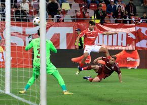 Fundașul dreapta al Rapidului l-a condus pe Musi în tușă, dar jucătorul dinamovist a rămas concentrat și a trimis un șut precis, din unghi, în vinclu, fără șanse pentru goalkeeperul advers.