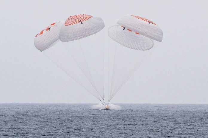 Un echipaj internațional format din doi astronauți americani, un cosmonaut rus și un astronaut japonez s-a întors pe Pământ sâmbătă, după o aterizare reușită a capsulei SpaceX Crew Dragon în largul coastelor Californiei. A fost transmisă în direct de către agenția spațială americană NASA.