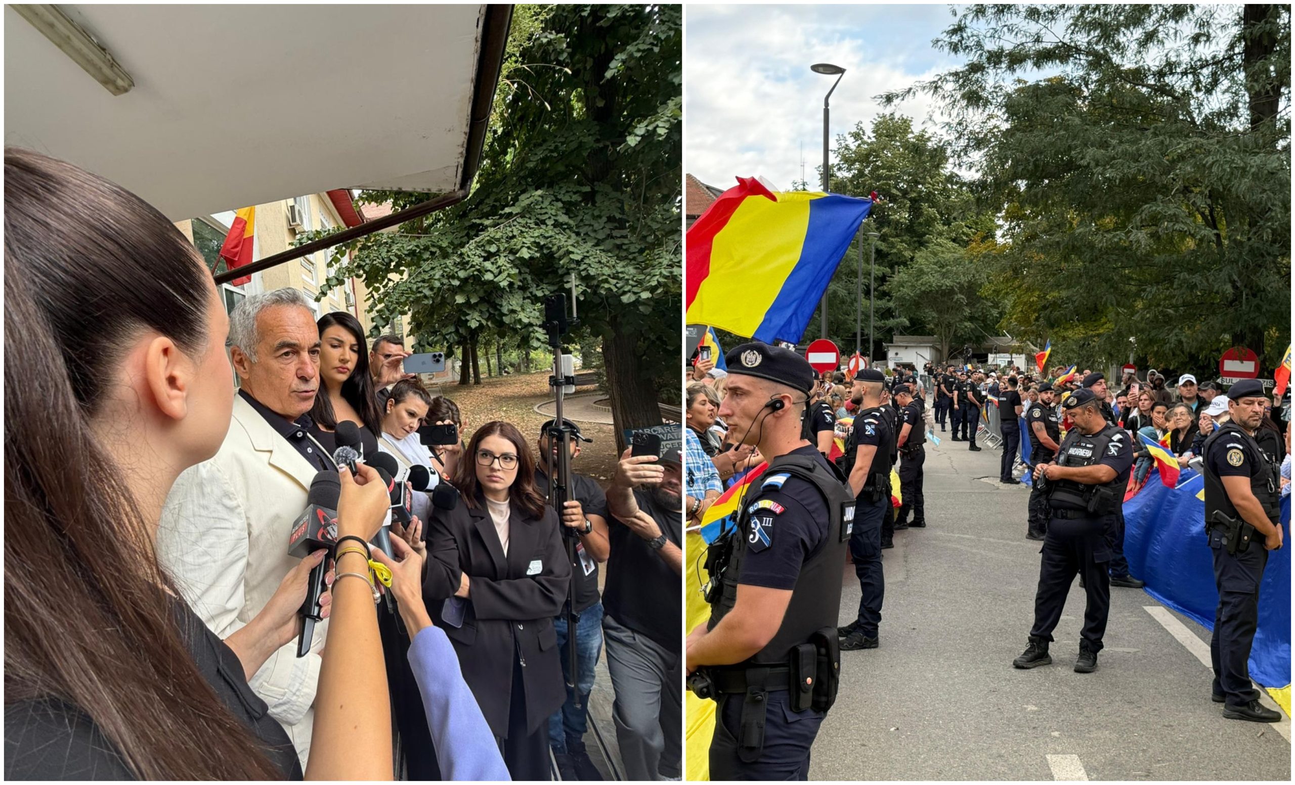 Luni dimineață, la ora 10:00, Georgescu a fost întâmpinat de zeci de susținători cu steaguri naționale în fața secției de poliție.