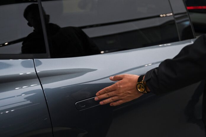 Un bărbat deschide ușa unui vehicul electric Zeekr X7 într-un showroom din Beijing, pe 3 februarie 2026. Credit: Pedro Pardo / AFP / Profimedia