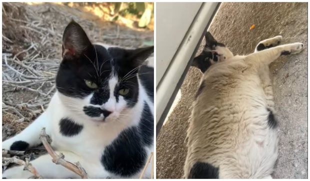 He emerged from the shadows… again. Flew 1,800 miles to find him. #ChonkusMaximus #catsoftiktok #chonkycat #crete #travelinspo #eurosummer