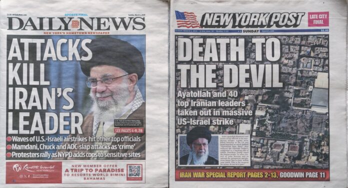 Imaginea publicată pe prima pagină a ziarelor afișează conținutul cu titlul despre dispariția liderului suprem.