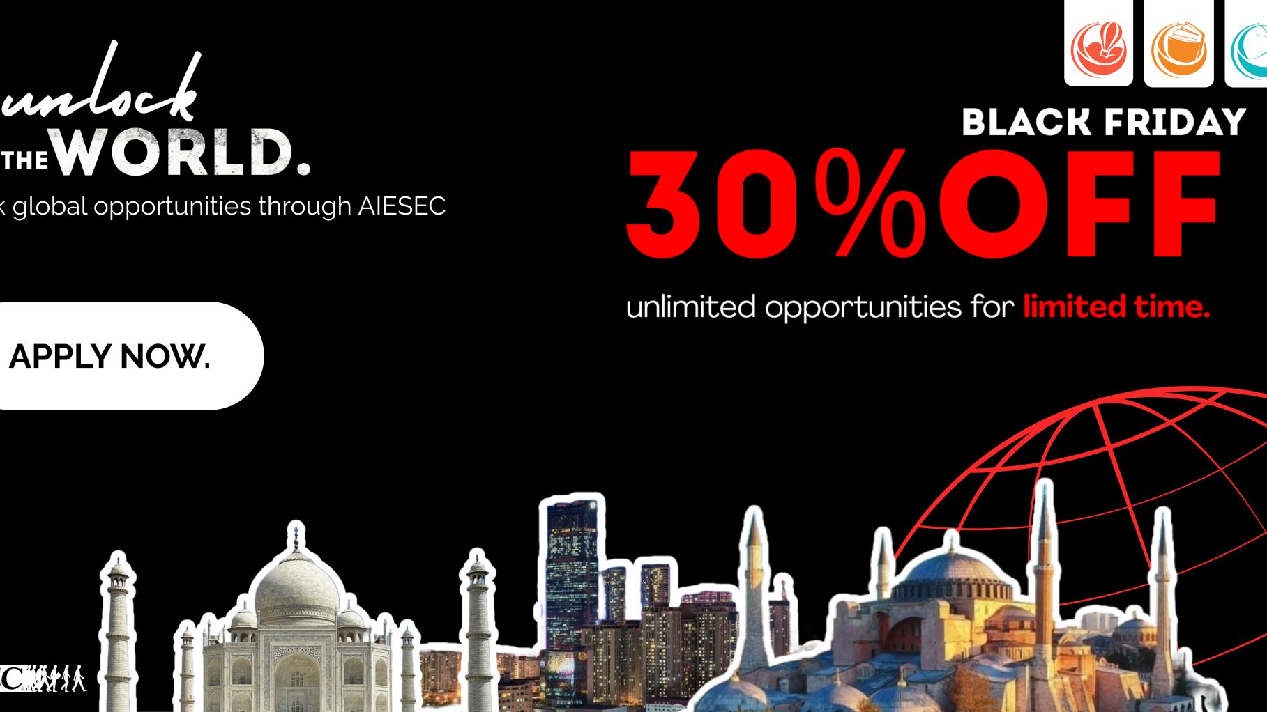 Vrei să deblochezi cele mai multe țări pe hartă? Începând cu 1 noiembrie, AIESEC București îți oferă oportunitatea prin campania “Unlock the World”. AIESEC sprijină campania națională de Black Friday și îți propune o reducere de 30% pentru proiectele de voluntariat, stagii internaționale și activități de profesorat în străinătate.