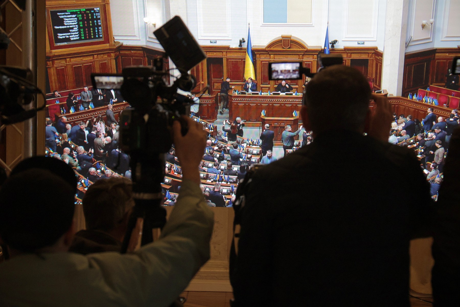 Galușcenko și Grinciuk nu au fost prezenți în sală. Ambii și-au depus demisiile cu o săptămână înainte, la solicitarea președintelui Volodimir Zelenski.