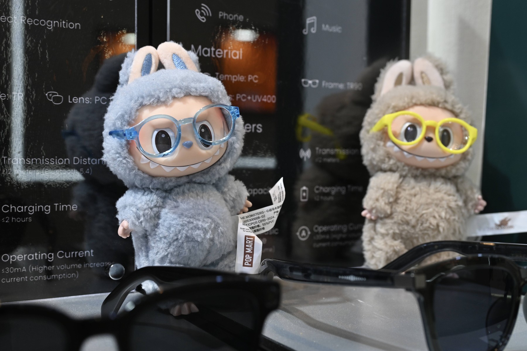 Păpuși Labubu purtând ochelari în cadrul unui târg de optică din Hong Kong. Foto: Kobe Li / imago stock&people / Profimedia.