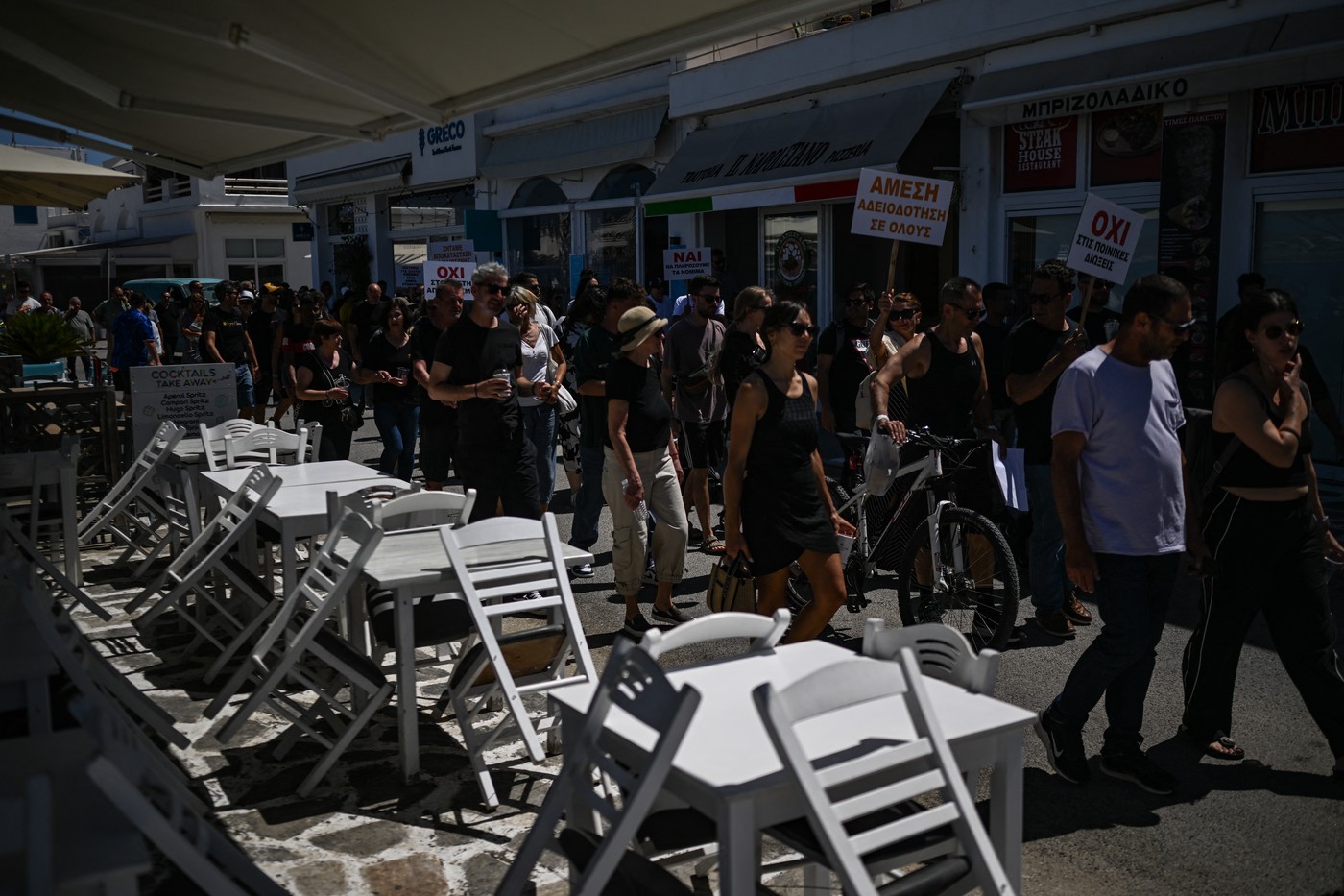 Protestul proprietarilor de restaurante de pe insula Paros, Grecia. Imagine: Aris MESSINIS / AFP / Profimedia