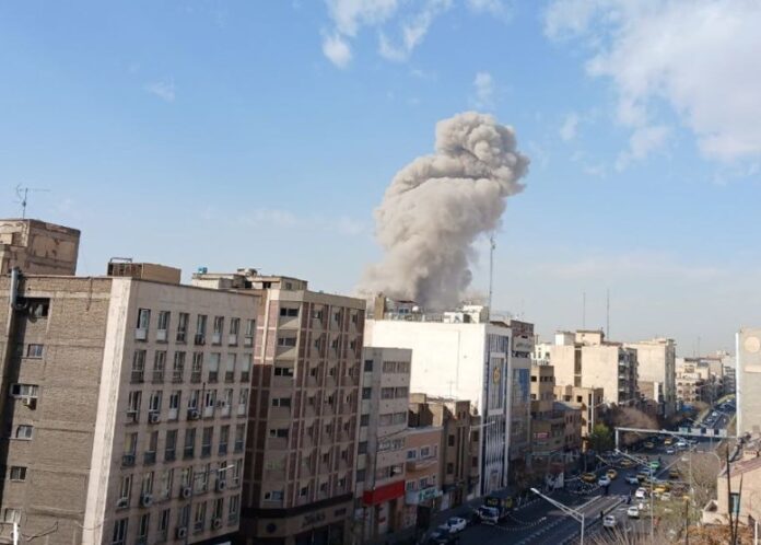 Autoritățile iraniene au raportat explozii la Teheran, iar presa de stat a prezentat imagini cu fumul dens. Un reprezentant al rețelei @IRIran_Military de pe Twitter a comentat, în engleză, „Let the world know that we did not start this war” („Lăsați lumea să știe că nu am inițiat noi acest război”).