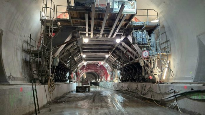 Construcția ambelor rame ale tunelului se realizează simultan, nonstop, 24 de ore pe zi, șapte zile pe săptămână. Antreprenorul a mobilizat peste 600 de muncitori și 210 utilaje și echipamente pe întregul lot, iar procentul de progres al lucrărilor a depășit 80%.