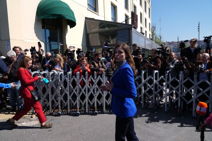 Presa așteaptă la Palatul Dolmabahçe din Istanbul negocierile dintre Rusia și Ucraina. Foto: Agenția Foto