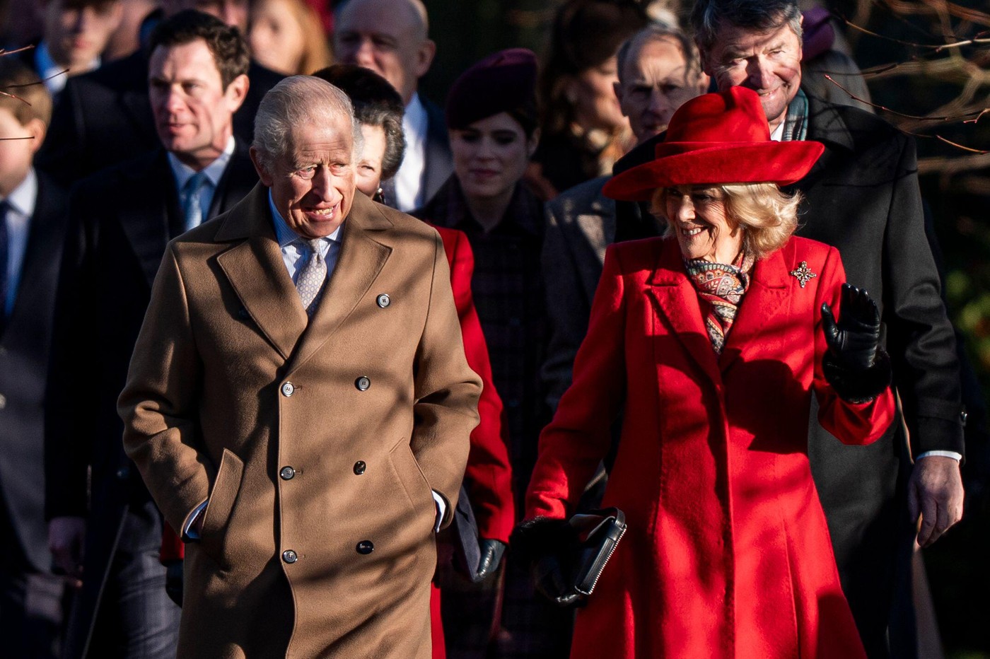 Regele Charles și regina Camilla participând la slujba de Crăciun organizată la biserica din Sandringham. Fotografie: Aaron Chown, PA Images / Alamy / Profimedia