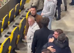 Mihai Rotaru a urmărit partida din tribune și a trăit la intensitate maximă. După golul lui Telles, patronul oltenilor, Felgueiras, și Silvian Cristescu s-au alăturat manifestării de bucurie, sărind și îmbrățișându-se în lojă, după ce echipa a avansat în finală.