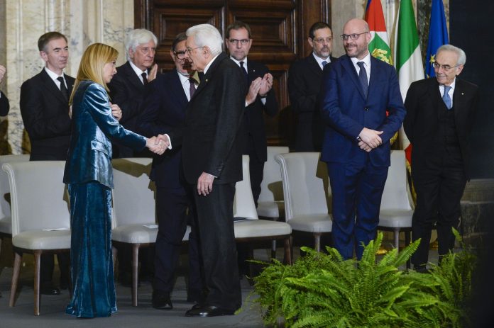 Premierul Giorgia Meloni și președintele Sergio Mattarella în timpul unui eveniment oficial desfășurat la Roma în data de 19 decembrie 2025. Credit: Italy Photo Press / Zuma Press / Profimedia