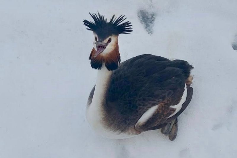 Corcodelul mare a fost găsit în condiții neprielnice, fără a putea zbura, din cauza zăpezii. Personalul a observat penajul colorat și evantaiul de pe cap al păsării. Polițistul local Ștefan a intervenit rapid, a înfășurat pasărea într-un prosop pentru a o calma și a fost dusă într-o cușcă specială.