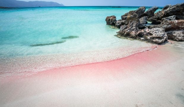 Frumusețea plajei Elafonissi din Creta este remarcabilă, cu nisip roz și ape cristaline. Această nuanță roz a nisipului este rezultatul descompunerii cochiliilor mici de organisme marine.