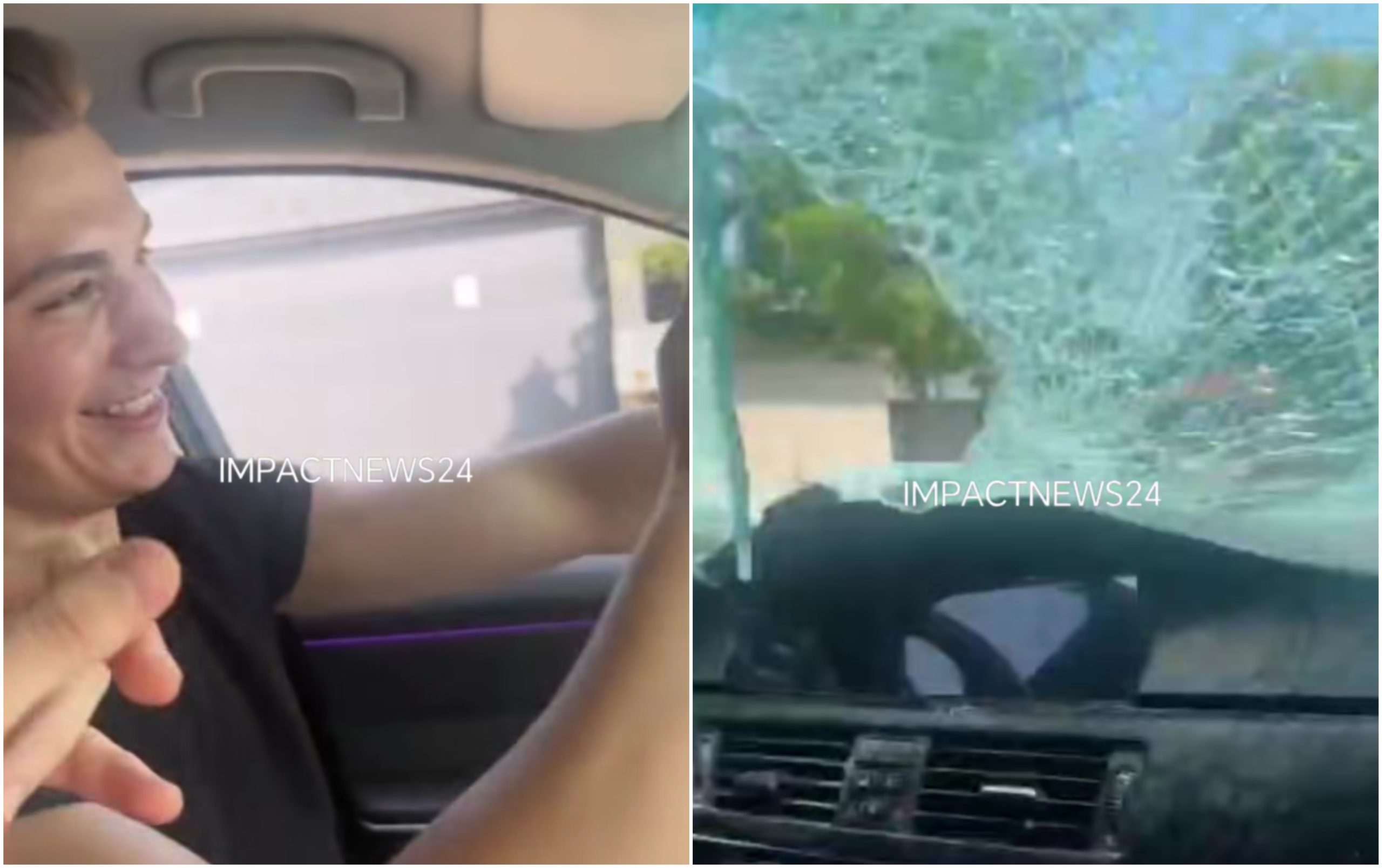 Imagini ale evenimentului, publicate de un cotidian local, arată un tânăr la volan, cu parbrizul spart, ascultând muzică și filmându-se alături de un pasager.