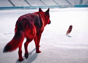 Clipul prezentat arată un câine cu blană roșie care pășește pe gazonul unui stadion similar Arenei Naționale. Animalul merge pe un covor de zăpadă și, ajuns în dreptul unei pene, latră amenințător. Penele apar a fi asociate cu o pasăre de talie mare, precum un vultur, simbol al siglei Rapidului.