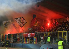 Meciul a fost marcat de un spectacol pirotehnic oferit de suporterii români.