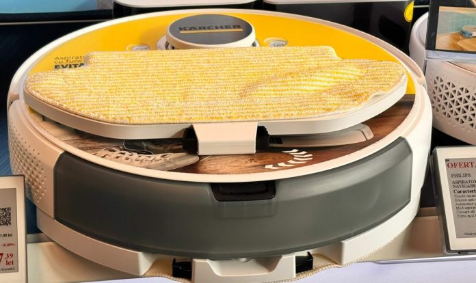 Pe site-ul Emag, se găsește robotul Karcher RCV 3 cu funcție de mop, consum de 33 W, baterie de 3.200 mAh, la prețul de 1.217,69 lei. Are un recipient de murdărie de 500 ml și unul pentru apă de 170 ml.