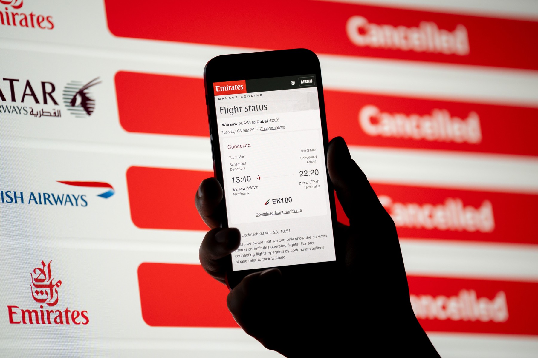Mai multe guverne, printre care Regatul Unit și Germania, au trimis avioane pentru evacuarea cetățenilor lor din regiune. În ciuda acestor măsuri, puține curse comerciale mai operează de pe aeroporturile din Emirate, iar procesele de evacuare cu avioane private au crescut.