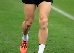 Genunchiul său prezintă totuși o cicatrice vizibilă de-a lungul rotulei, semn al accidentării suferite la reprezentativa națională.