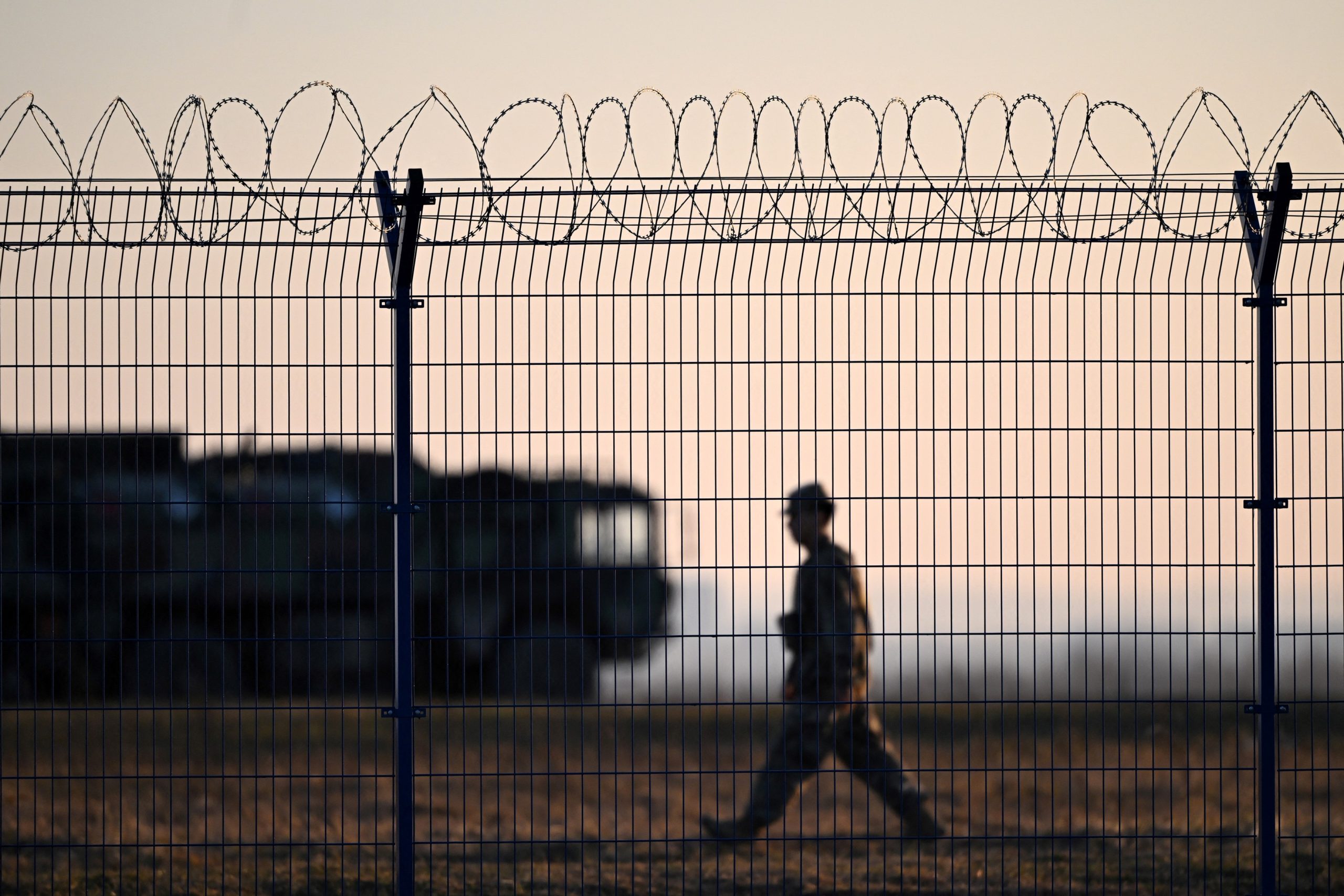 Un militar traversează un sistem de apărare antiaeriană Patriot, amplasat la baza militară din Polonia pentru Ucraina, pe aeroportul Rzeszów-Jasionka. Imagine: Sergei Gapon / AFP / Profimedia