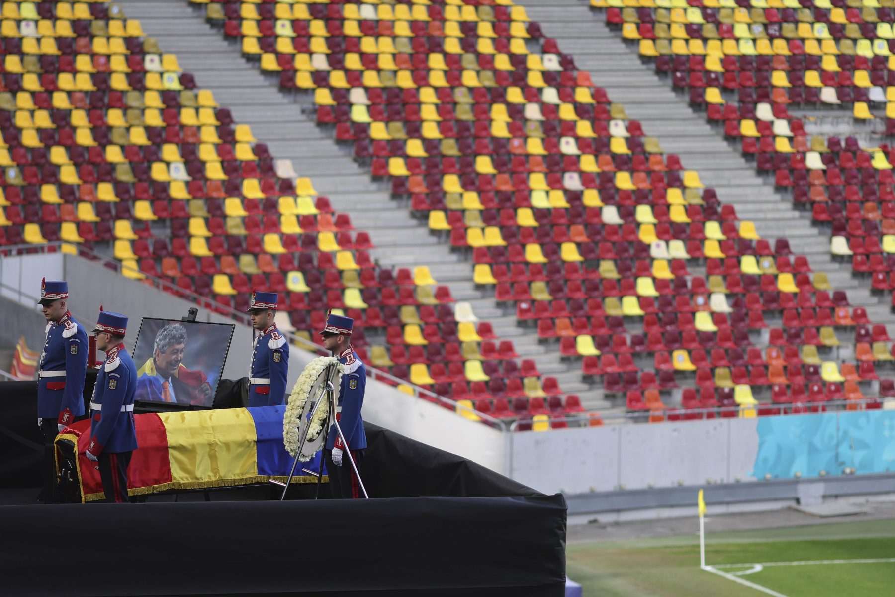 La Arena Națională, mai mulți foști fotbaliști și antrenori, între care Gheorghe Hagi, Dorin Mateuț și Mircea Rednic, au depus coroane de flori pentru a onora memoria lui Mircea Lucescu.