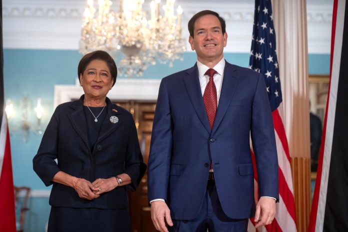 Kamla Persad-Bissessar, premierul din Trinidad și Tobago, și secretarul de stat american Marco Rubio. Fotografie: Mark Schiefelbein / AP / Profimedia