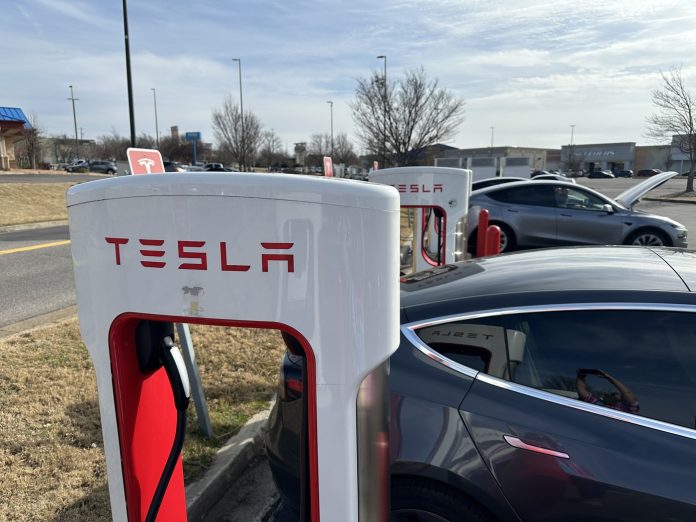Utilizatorii de vehicule electrice se bucură de rețeaua de încărcare rapidă Tesla Supercharger în Tennessee, SUA, 9 ianuarie 2026. Credit: Karen Focht / Zuma Press / Profimedia