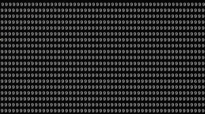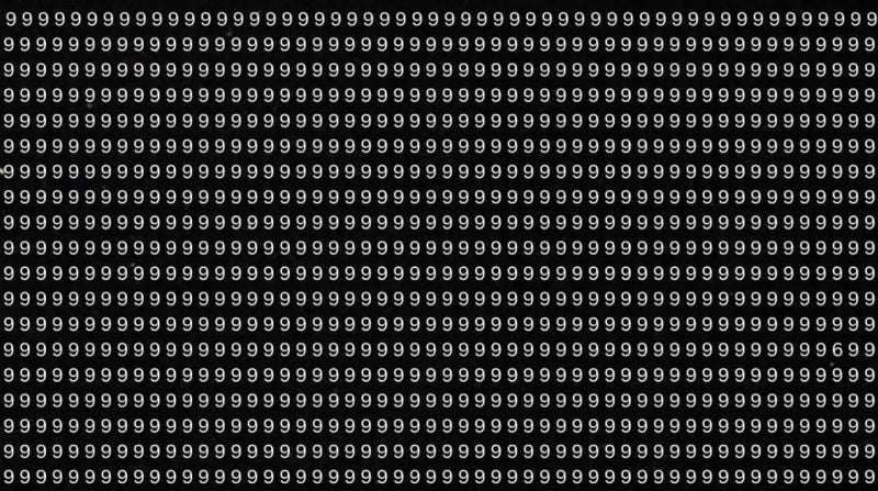 În acest puzzle vizual, imaginea este dominată de un singur număr: cifra 9. La prima vedere, totul pare uniform, ordonat și lipsit de surprize. Totuși, printre aceste cifre identice se ascunde un element diferențiat, camuflat perfect.