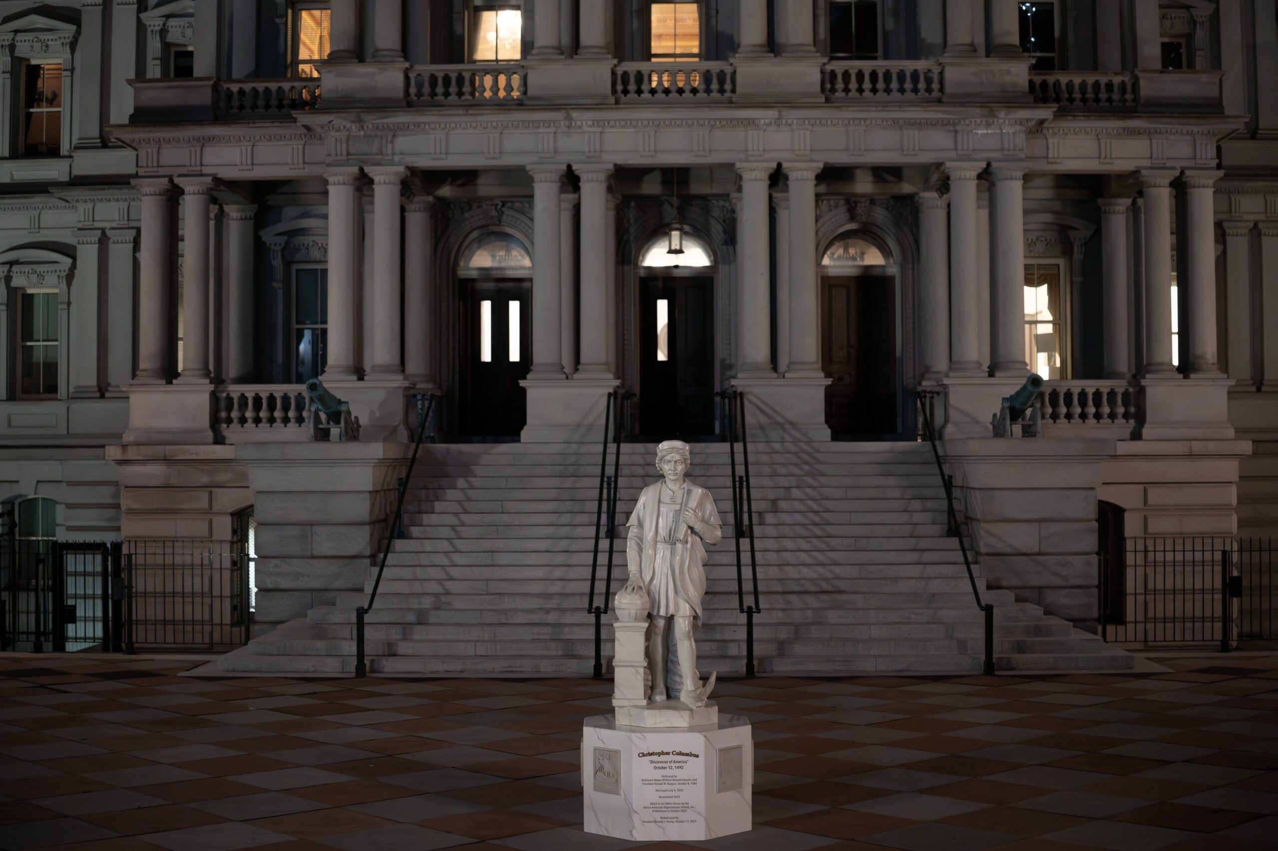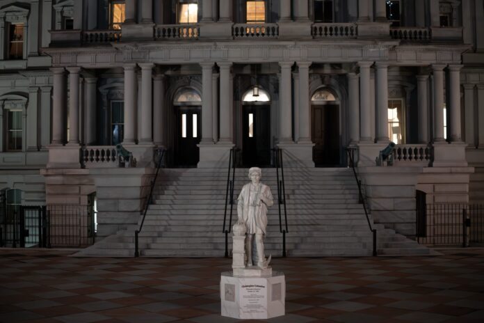 O statuie a exploratorului italian Cristofor Columb a fost amplasată lângă Casa Albă, în cadrul unei decizii anunțate recent de administrația președintelui Donald Trump. Inițiativa a fost salutată de liderul de la Casa Albă, care a mulțumit grupului itali-american pentru donarea statuii, și a fost plasată în partea de nord a clădirii Eisenhower, în incinta complexului executiv.