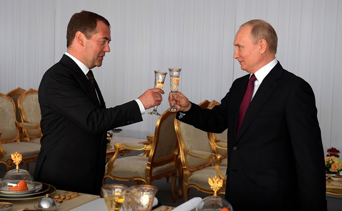 Dmitri Medvedev și Vladimir Putin. FOTO: RIA Novosti / WillWest News / Profimedia